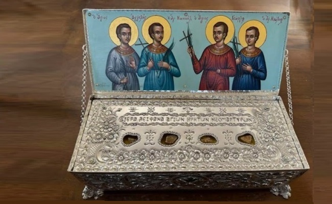 Πριν την απόλυση της Θ. λειτουργίας, ο Αρχιεπίσκοπος Κρήτης παρέδωσε αποτμήματα των ι. Λειψάνων των Αγίων Τεσσάρων Νεομαρτύρων Μανούηλ, Αγγελή, Γεωργίου και Νικολάου, που μαρτύρησαν στο Ρέθυμνο, με την επισήμανση ότι εφέτος συμπληρώνονται διακόσια χρόνια από το μαρτύριό τους (1824-2024)