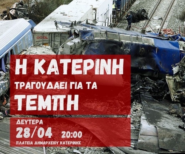 Τη Δευτέρα 28 Απριλίου 2025, ώρα 20:00, στην Πλατεία Δημαρχείου Κατερίνης, θα πραγματοποιηθεί μια μεγάλη συναυλία αφιερωμένη στη μνήμη των 57 ανθρώπων που χάθηκαν τόσο άδικα στα Τέμπη.