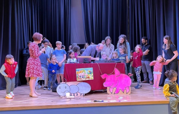 Σε κλίμα ευχάριστο και δημιουργικό τα παιδιά αφομοίωσαν τι είναι η μουσική τεχνολογία και δημιούργησαν ηχοτοπία για παραμύθια με τη βοήθεια του Συνθέτη – καλλιτέχνη ήχου κ. Δημήτρη Μπάκα και της εμψυχώτριας και αφηγήτριας κας Δήμητρας Τζημαγιώργη.
