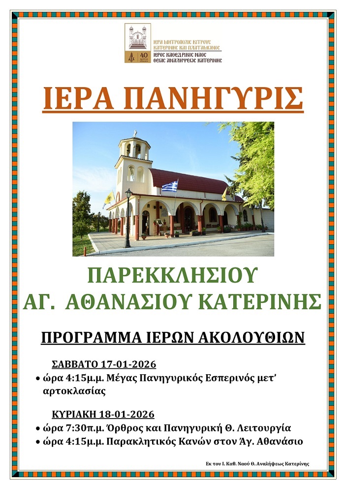 AIGINIONEWS: Ιερά Πανήγυρις Παρεκκλησίου  Αγίου Αθανασίου Κατερίνης AIGINIONEWS: Ιερά Πανήγυρις Παρεκκλησίου Αγίου Αθανασίου Κατερίνης
