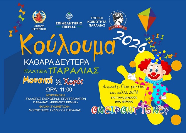 Στο Δήμο Κατερίνης γιορτάζουμε την Καθαρά Δευτέρα 23 Φεβρουαρίου 2026.