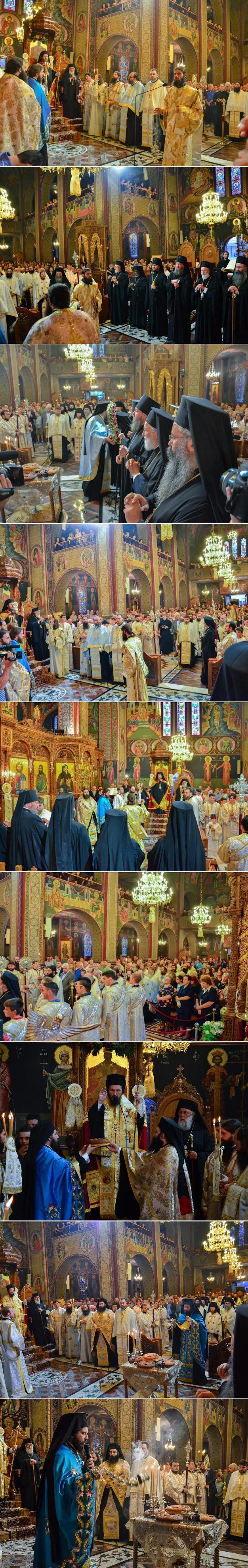 Κατά τον Πανηγυρικό Εσπερινό χοροστάτησε ο Θεοφιλέστατος Επίσκοπος Σαλώνων κ. Αντώνιος, συγχοροστατούντων των Σεβασμιωτάτων Μητροπολιτών Κέρκυρας, Παξών και Διαποντίων Νήσων κ. Νεκτάριου, Μουάνζας και Δυτικής Τανζανίας κ. Ιερωνύμου (Πατριαρχείο Αλεξανδρείας), Τριπόλεως και πάσης Λιβύης κ. Θεοφυλάκτου (Πατριαρχείο Αλεξανδρείας), των Αρχιεπισκόπων Τιράσπολ και Ντουμποσάρ κ. Σάββα (Πατριαρχείο Μόσχας-Μολδαβία), Πέτεργκοφ κ. Αμβροσίου (Πατριαρχείο Ρωσίας-Αγία Πετρούπολη), του Θεοφιλαστάτου Επισκόπου Θερμών κ. Δημητρίου (Οικουμενικό Πατριαρχείο) και του επιχωρίου Μητροπολίτη Κίτρους, Κατερίνης και Πλαταμώνος κ. Γεωργίου.