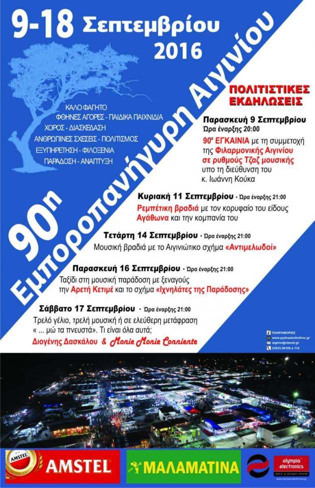 90α ΕΓΚΑΙΝΙΑ με τη συμμετοχή της Φιλαρμονικής Αιγινίου σε ρυθμούς Τζαζ μουσικής υπό τη διεύθυνση του κ. Ιωάννη Κούκα.