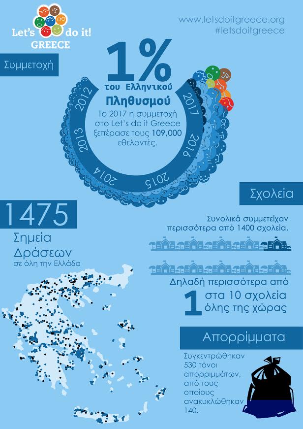 Στo Let's do it Greece 2017... πάνω από 109.000 μοναδικοί, παθιασμένοι, δημιουργικοί εθελοντές συντονιστήκαμε σε κάθε γωνιά της Ελλάδας, ομορφαίνοντας τις περιοχές μας και την καθημερινότητά μας!