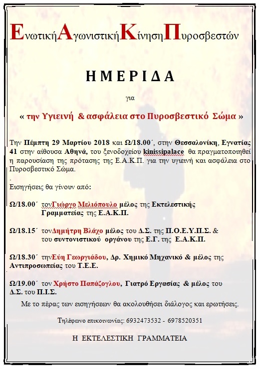 ΕΑΚΠ: ΗΜΕΡΙΔΑ για την Υγιεινή & ασφάλεια στο Πυροσβεστικό Σώμα - 29 Μαρτίου 2018