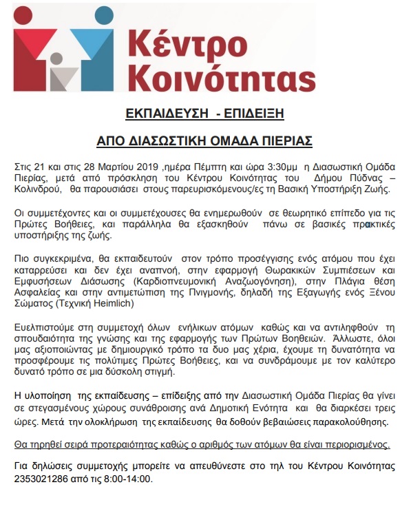 Η πρόεδρος της Διασωστικής Ομάδας Πιερίας
