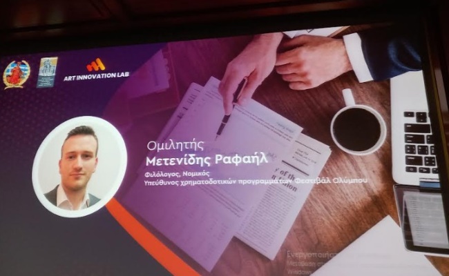 Εισηγητής της καθόλα αξιόλογης πρωτοβουλίας, ο νομικός με εξειδίκευση στο εταιρικό και φορολογικό δίκαιο καθώς και φιλόλογος, Ραφαήλ Μετενίδης. Αλλά και με την ιδιότητα του υπεύθυνου χρηματοδοτικών προγραμμάτων και διεθνών συνεργασιών του Οργανισμού Φεστιβάλ Ολύμπου.