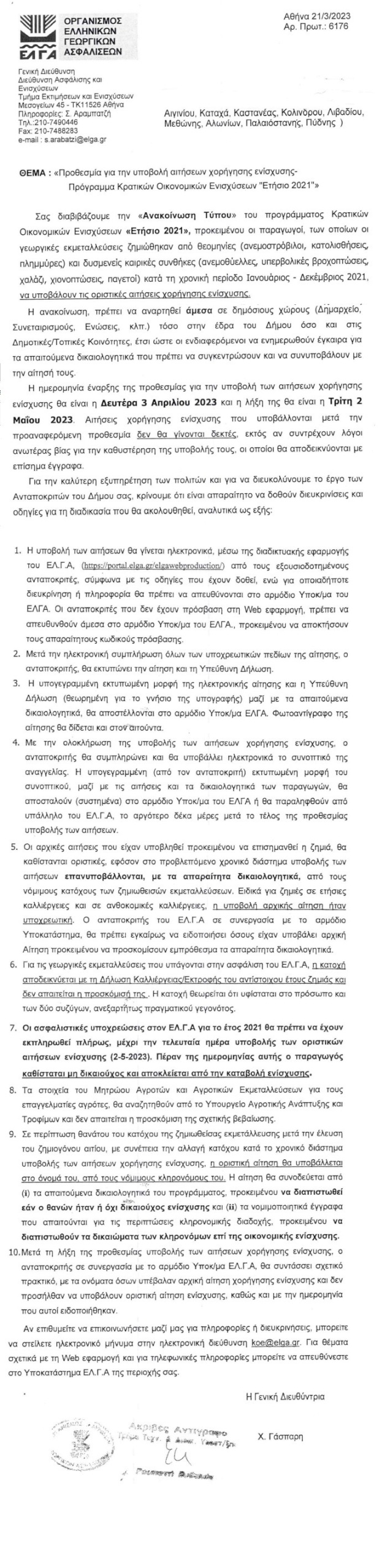Η ημερομηνία έναρξης της προθεσμίας για την υποβολή των αιτήσεων χορήγησης ενίσχυσης άρχισε την Δευτέρα 3 Απριλίου 2023 και η λήξη της θα είναι η Τρίτη 2 Μαΐου 2023