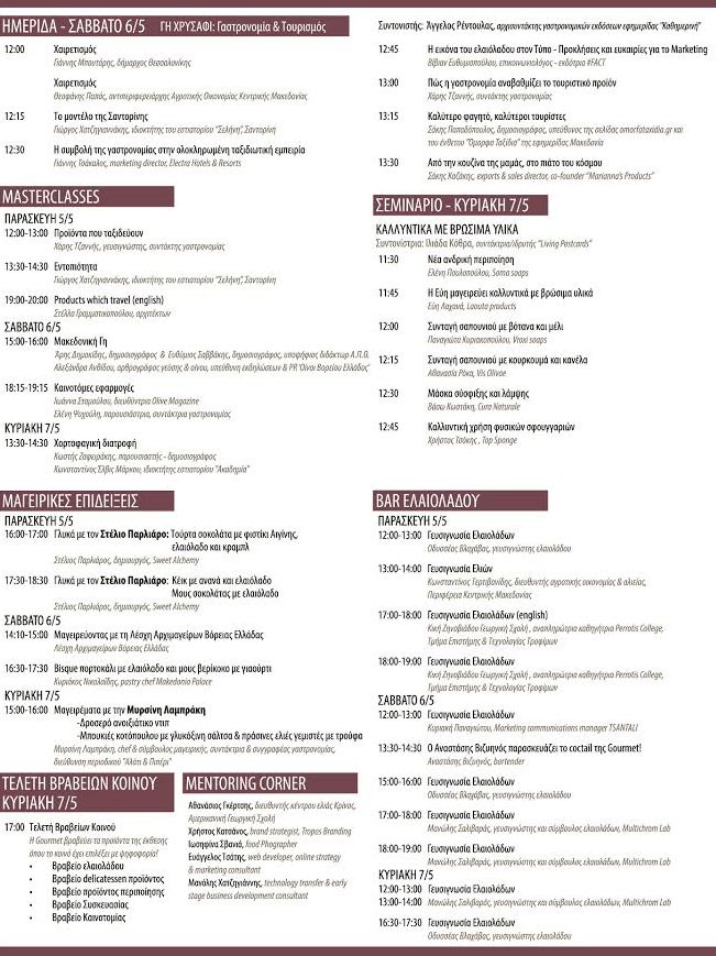 Το αναλυτικό πρόγραμμα της 2ης Gourmet Olive & Delicacies Exhibition