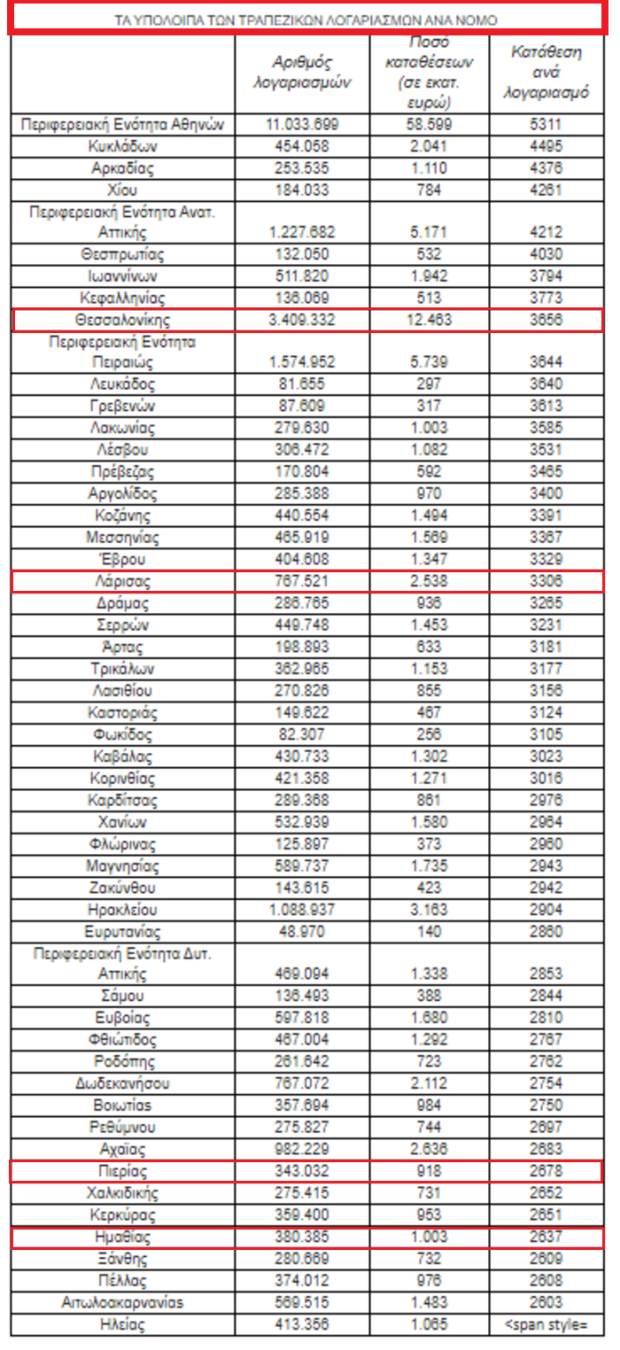 Και αν αναζητήσει κάποιος σε ποιες περιοχές της χώρας εντοπίζονται οι ποιο φουσκωμένοι προθεσμιακοί λογαριασμοί, τότε θα εντοπίσει
