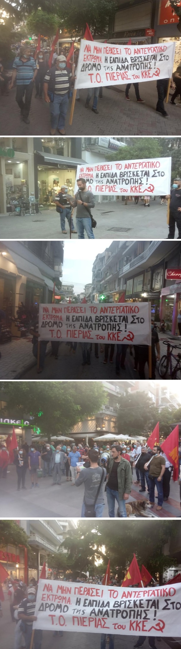 Ομιλία πραγματοποίησε ο γραμματέας της Τομεακής Επιτροπής Πιερίας, Παπαδόπουλος Αντώνης, ο οποίος μεταξύ άλλων ανέφερε ότι η παρούσα συγκέντρωση δεν είναι το τέλος αλλά η αρχή της μάχης των εργαζομένων ενάντια στο νομοσχέδιο - έκτρωμα και ότι το επόμενο διάστημα ο αγώνας θα κλιμακωθεί, μέχρι που η κυβέρνηση να αναγκαστεί να το πάρει πίσω.