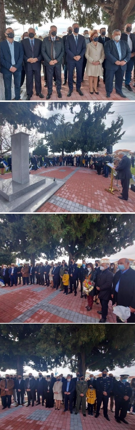 «Τιμούμε με κατάνυξη, με αίσθημα σεβασμού και ευγνωμοσύνης την επέτειο της ομαδικής εκτέλεσης από τους Γερμανούς των Ελλήνων πατριωτών, τον Φεβρουάριο του 1943 στον Σιδηροδρομικό Σταθμό. Η θυσία των Αη-Δημητρινών, των Λιβαδιωτών και του δημάρχου Κατερίνης Αιμίλιου Ξανθόπουλου χαράχτηκε ανεξίτηλη στη μνήμη μας, ενώ αποτελεί φωτεινό παράδειγμα υψηλών ιδανικών και πρότυπο ηρωισμού. Ας είναι αιωνία η μνήμη τους!».