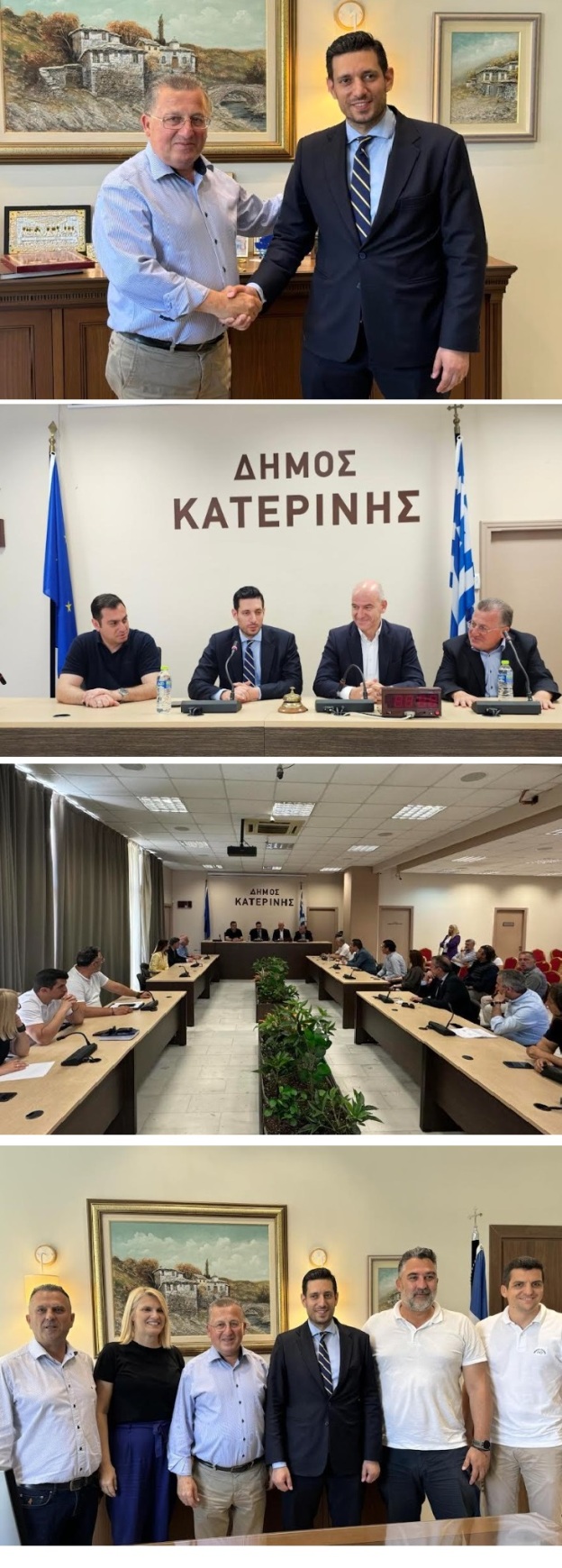Στην συνάντηση παρέστησαν οι Βουλευτές Πιερίας της Νέας Δημοκρατίας, Ξενοφών Μπαραλιάκος, Σπύρος Κουλκουδίνας, εκπρόσωπος της υφυπουργού Ανάπτυξης, Άννας Μάνη – Παπαδημητρίου, ο πρόεδρος της ΔΕΕΠ Πιερίας της Ν.Δ., Χαράλαμπος Μπρουσκέλης, αντιδήμαρχοι του Δήμου Κατερίνης, καθώς και κομματικά στελέχη.