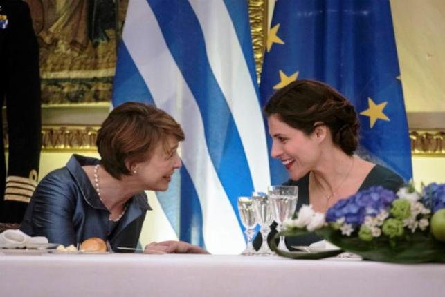 Οι δυο γυναίκες έχουν μεταξύ τους μια εξαιρετική σχέση και μετά το «τυπικόν» άρχισαν να τα λένε σε φιλικό κλίμα, ενώ δεν σταμάτησαν να χαμογελούν η μια στην άλλη και να τσουγκρίζουν τα ποτήρια τους.