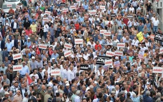 Πρόκειται για τη μεγαλύτερη διαμαρτυρία κατά της κυβέρνησης, μετά το αποτυχημένο πραξικόπημα του περασμένου Ιουλίου, η οποία πραγματοποιήθηκε με πρωτοβουλία του ηγέτη της αντιπολίτευσης Κεμάλ Κιλιτσντάρογλου.