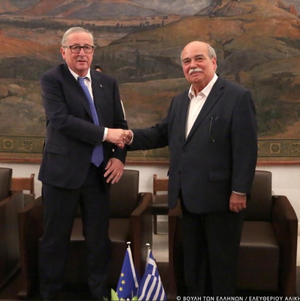 «Είμαστε πολύ ευτυχείς που υποδεχόμαστε τον κ. Jean-Claude Juncker στο Ελληνικό Κοινοβούλιο. Η χώρα μας σε 3 χρόνια θα γιορτάσει τα 200 χρόνια της ανεξαρτησίας της και το Κοινοβούλιό μας είναι από τα αρχαιότερα της Ευρώπης, έχει ζήσει ευτυχείς και δραματικές στιγμές» τόνισε ο Πρόεδρος της Βουλής, συμπληρώνοντας ότι ο κ. Jean-Claude Juncker είναι ο πρώτος αξιωματούχος της Ευρωπαϊκής Ένωσης, ο οποίος θα απευθύνει ομιλία στην Ολομέλεια της Βουλής των Ελλήνων.