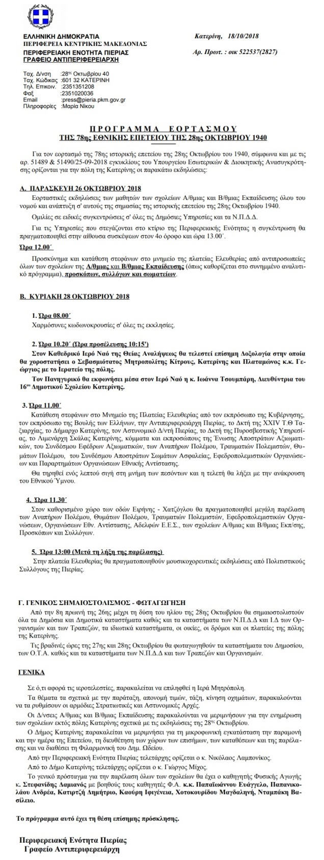 ΠΡΟΓΡΑΜΜΑ ΕΟΡΤΑΣΜΟΥ ΤΗΣ ΕΘΝΙΚΗΣ ΕΠΕΤΕΙΟΥ ΤΗΣ 28ης ΟΚΤΩΒΡΙΟΥ 1940