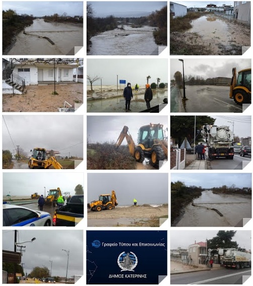 Εν τω μεταξύ, σε επιφυλακή και επιχειρησιακή ετοιμότητα λόγω των ακραίων καιρικών φαινομένων, που επικρατούν από χθες στην περιοχή μας, τέθηκε το αρμόδιο Γραφείο Πολιτικής Προστασίας και όλες οι εμπλεκόμενες υπηρεσίες του Δήμου Κατερίνης και της ΔΕΥΑΚ, προκειμένου να παρέμβουν σε συνεργασία με τις αρμόδιες αρχές, όπου είναι απαραίτητο.