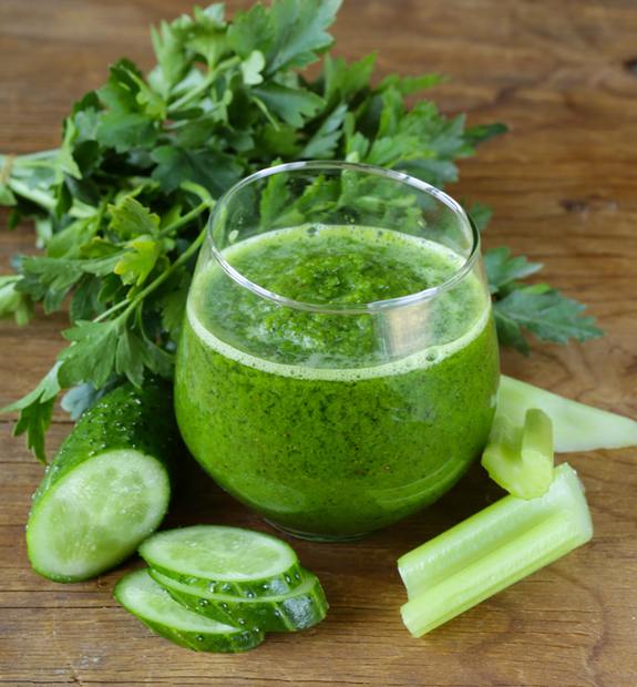 Έξτρα αποτοξινωτικός χυμός με κύριο υλικό το σέλερι, έναν μικρό διατροφικό θησαυρό… Είναι εξαιρετική πηγή βιταμίνης Κ και πολύ καλή πηγή ασβεστίου και μαγνησίου που βοηθούν στη διατήρηση της υγείας των αρθρώσεων, ενώ το κάλιο και το νάτριο που περιέχει του προσδίδουν διουρητικές ιδιότητες. Η γεύση του είναι χαρακτηριστική και έντονη και ταιριάζει πολύ με το λεμόνι που περιέχει κιτρικό οξύ, κάλιο, μαγνήσιο και φώσφορο και έχει λιποδιαλυτική δράση. Το αγγούρι που αποτελείται κατά 95% νερό, ενισχύει τη διουρητική δράση του χυμού, ενώ οι λίγες του θερμίδες, η χαμηλή περιεκτικότητά του σε υδατάνθρακες και η δροσερή του γεύση το καθιστά μία τροφή σύμμαχο για όσους θέλουν να χάσουν κιλά.