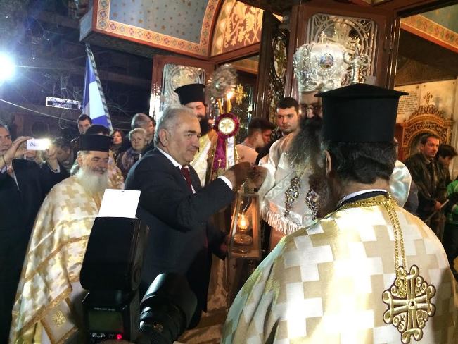 Πριν την τελετή της Αναστάσεως, ο Δήμαρχος της πόλης Σάββας Χιονίδης, ακολουθώντας πολυετή παράδοση, μετέφερε από το αεροδρόμιο Θεσσαλονίκης το Άγιο Φως και το παρέδωσε στον Σεβασμιώτατο υπό τους παιάνες της Φιλαρμονικής του Δήμου και τις κωδωνοκρουσίες.
