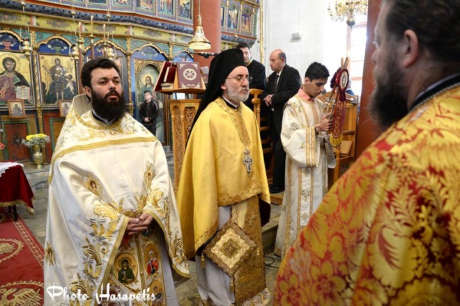 Στον εσπερινό χοροστάτησε ο Μητροπολίτης Τριπόλεως Λιβύης Θεοφύλακτος Τζουμέρκας μαζί με τον Αρχιμανδρίτη της Ιεράς Μητρόπολης Κίτρους, Κατερίνης και Πλαταμώνος π. Ιωακείμ Οκονομίκο και τους ιερείς του Κολινδρού π. Χρήστο Παπαϊωάννου και π. Παναγιώτη Τιμαμόπουλο.