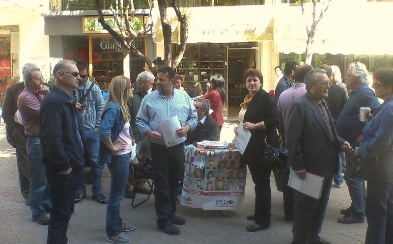 Μέλη και φίλοι του ΣΥΡΙΖΑ συγκεντρώθηκαν το πρωί του Σαββάτου 18-4 στον πεζόδρομο της Κατερίνης, οπού διένειμαν το φυλλάδιο της καμπάνιας και συνομίλησαν με τους πολίτες.