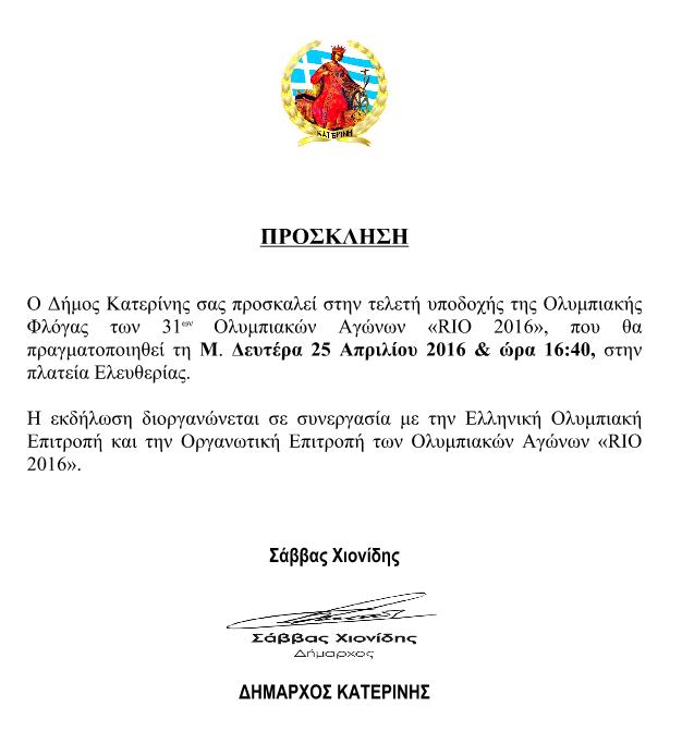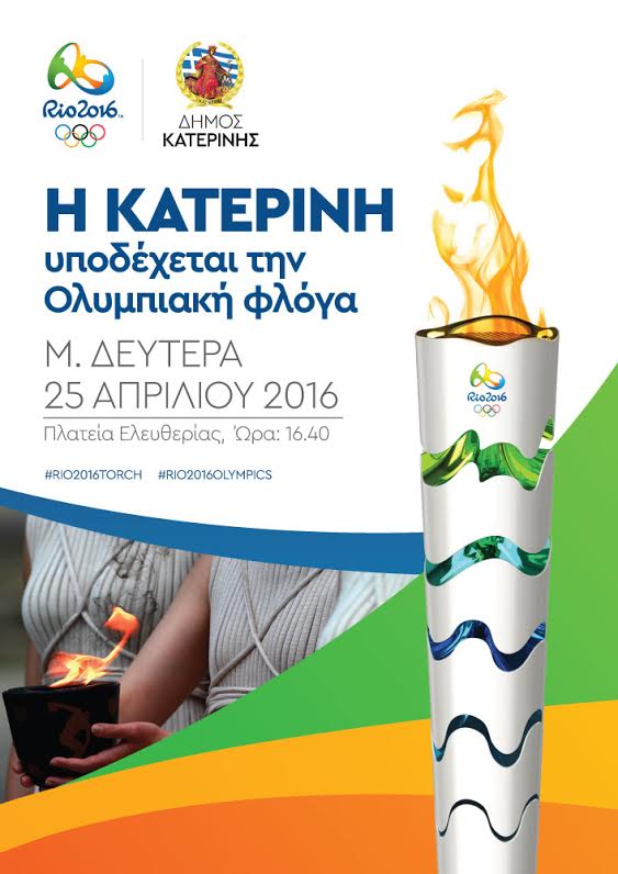 Ώρα 16:54: Άφιξη Ολυμπιακής Φλόγας στην Κατερίνη – 17:00: Αφή βωμού από λαμπαδηδρόμο.