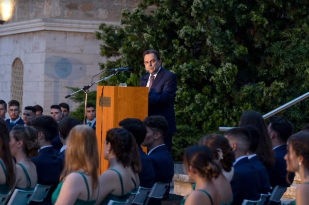 «Η παρουσία μου μαρτυρά τη σημασία που δίνει η κυβέρνηση στην ενίσχυση του πρωτογενούς τομέα με εξειδικευμένες γνώσεις. Γνώσεις που σήμερα απουσιάζουν και καθιστούν, δυστυχώς, τη χώρα μας ουραγό στον τομέα της εκπαίδευσης στην Ευρώπη», είπε στην αρχή της ομιλίας του. Υπογράμμισε ότι τα εφόδια που έλαβαν οι μαθητές από την Αμερικανική Γεωργική Σχολή, τους τοποθετούν σε πλεονεκτικότερη θέση έναντι άλλων, στην προσπάθεια να επιτύχουν στη ζωή τους. «Αποτελεί επιλογή της κυβέρνηση η ενίσχυση της επιχειρηματικότητας και της ανταγωνιστικότητας του πρωτογενούς τομέα», υπογράμμισε, δίνοντας ιδιαίτερη βαρύτητα στην πράσινη ανάπτυξη, την ενσωμάτωση των νέων τεχνολογιών στην αγροτική παραγωγή, την ενίσχυση της αγροτικής εκπαίδευσης, την προώθηση των θησαυρών της ελληνικής γης, την μετάβαση από το μοντέλο της οικογενειακής εκμετάλλευσης σε αυτό της αγροτικής επιχείρησης και της ενδυνάμωσης των συνεταιριστικών, αγροτικών συλλογικών σχημάτων.