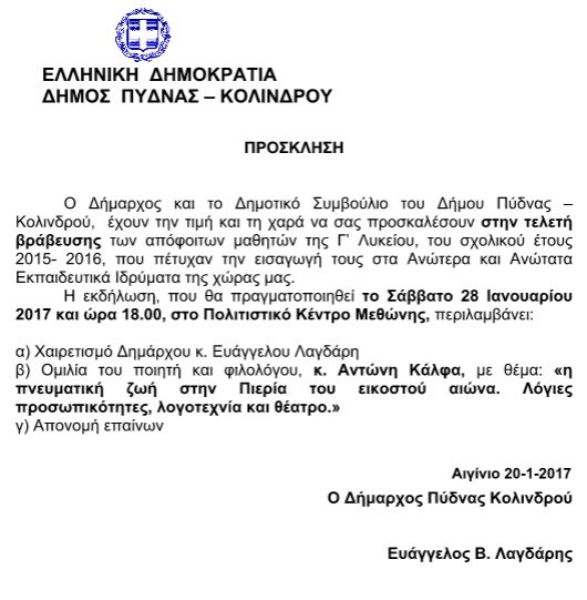 Η εκδήλωση, θα πραγματοποιηθεί το Σάββατο 28 Ιανουαρίου 2017 και ώρα 18.00, στο Πολιτιστικό Κέντρο Μεθώνης.