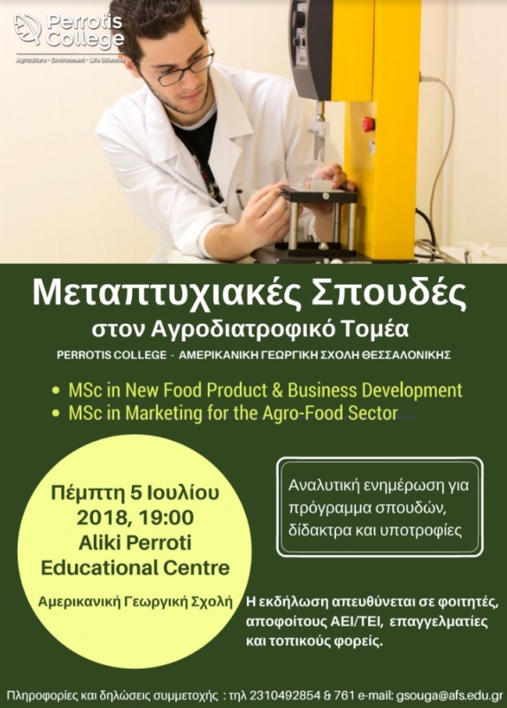 Κατά τη διάρκειά της, στελέχη του Perrotis College θα αναπτύξουν διεξοδικά τα προγράμματα, το ακαδημαϊκό και ερευνητικό περιεχόμενο τους, τις προοπτικές και φυσικά τα δίδακτρα και τις διαθέσιμες υποτροφίες.