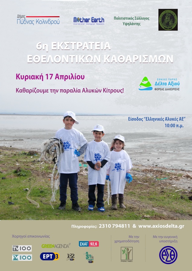 Ο Φορέας Διαχείρισης Δέλτα Αξιού με την υποστήριξη του Δήμου Πύδνας Κολινδρού, διοργανώνει την 6η Εκστρατεία Εθελοντικού Καθαρισμού,