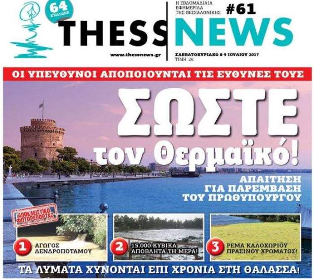 Πολύ πρόσφατα η ίδια εφημερίδα έφερε στο φως αγωγό «φάντασμα» ο οποίος απορρίπτει ανεπεξέργαστα στη θάλασσα λύματα από την δυτική Θεσσαλονίκη. έπειτα από αυτοψία στο ρέμα Δενδροποτάμου.