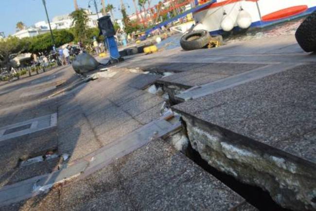 Σημαντικές ζημιές υπέστη το λιμάνι της Κω από τον ισχυρό σεισμό των 6,4 Ρίχτερ, με αποτέλεσμα να κλείσει και τα πλοία να μην μπορούν να δέσουν σε αυτό.