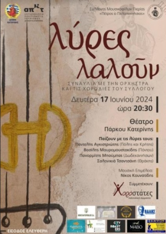 Λύρες Λαλούν": Συναυλία του Συλλόγου Μουσικοφίλων Πιερίας "Πέτρος ο Πελοποννήσιος" - 17 IOYNIOY 2024 - Συνδιοργάνωση με τον Δήμο Κατερίνης/ Αντιδημαρχία Πολιτισμού & Τουρισμού.