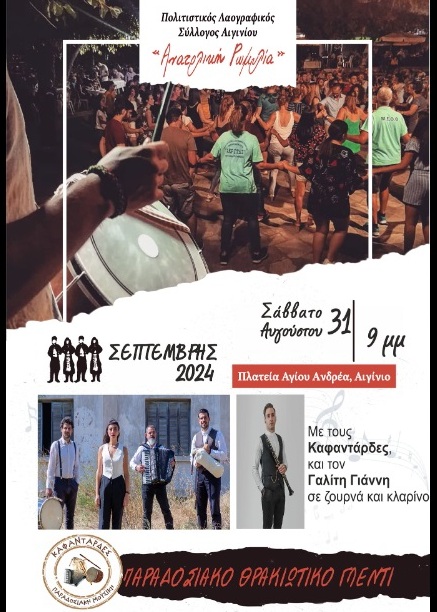 Το Σάββατο 31 Αυγούστου 2024 ολοκληρώνεται ο “Πολιτιστικός Σεπτέμβρης 2024” με το παραδοσιακό θρακιώτικο γλέντι που ενώνει μικρούς και μεγάλους σχηματίζοντας έναν από τους μεγαλύτερους κύκλους της Ελλάδας.