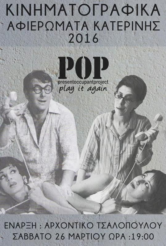 Το Pop: Present Occupant Project είναι ένα πρόγραμμα σαφώς επηρεασμένο από την λαική κουλτούρα (popular culture) που στοχεύει να εξετάσει εικαστικές δράσεις της σύγχρονης τέχνης εκτυλισσόμενες σε αναλόγου αισθητικής δημοσίους, αστικούς ή και εναλλακτικούς χώρους. Το πρόγραμμα, που έχει ήδη καταγράψει σημαντική καλλιτεχνική διαδρομή, φιλοξενείται φέτος για πρώτη φορά στην πόλη της Κατερίνης με τον τίτλο «Play it again» (παίξ’ το ξανά).