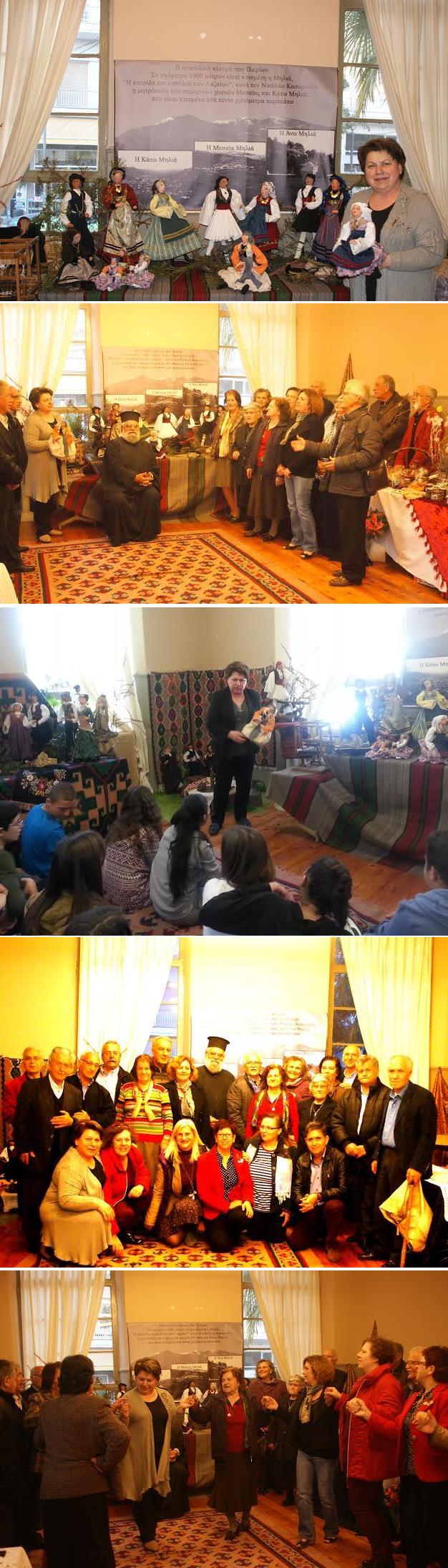 Όπως επισημαίνει σε δήλωσή του με αφορμή την επίσκεψη, ο πρόεδρος του συλλόγου Γεώργιος Μ. Χανδόλιας: «Τα μέλη της Χορωδίας αφού περιεργαστήκαμε τα εκθέματα και ιδιαίτερα τη Μηλιώτικη γωνιά, που δέσποζε στο κέντρο της αίθουσας, (μπροστά σε μια αφίσα που παρουσιάζει την ανατολική πλευρά των Πιερίων και τα τρία μας χωριά σκαρφαλωμένα στις πλαγιές του μυθικού βουνού), αισθανθήκαμε την ανάγκη να εκφράσουμε τη χαρά και τη συγκίνηση με λίγα Μηλιώτικα τραγούδια, τα οποία διαδέχονταν ασταμάτητα το ένα το άλλο, αφού κάποιες συγχωριανές μας μάλιστα πιάστηκαν στο χορό, για να φουντώσει στην κυριολεξία σε λίγο όταν κατέφθασε και ο γκαϊντατζής μας Γιώργος Νάτσιος και στην παρέα μας προστέθηκε και ο πρόεδρος της Εστίας Πιερίδων Μουσών Γρηγόρης Μιτσοκάπας».