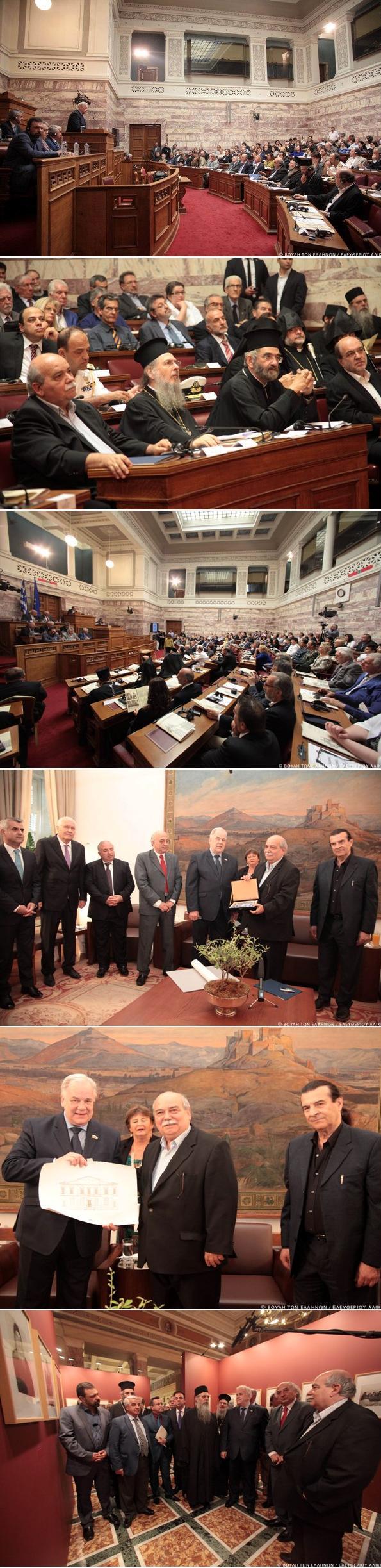 Αμέσως μετά τον Πρόεδρο της Βουλής, τον λόγο πήρε ο Υφυπουργός Εξωτερικών και Γενικός Γραμματέας της Διακοινοβουλευτικής Συνέλευσης Ορθοδοξίας, κ. Ιωάννης Αμανατίδης, ο οποίος, αφού αναφέρθηκε στη φετινή συγκυρία του αφιερωματικού έτους Ρωσίας-Ελλάδας και του εορτασμού της χιλιετούς παρουσίας Ρώσων μοναχών στο Άγιο Όρος, είπε: «Η δύσκολη διεθνής πραγματικότητα μας τροφοδοτεί κάθε μέρα με ειδήσεις συχνά δυσοίωνες. Κρίνω όμως σκόπιμο να αναφερθώ σε ένα καθοριστικής σημασίας γεγονός που θα λάβει χώρα τον επόμενο μήνα στη χώρα μας: την Αγία και Μεγάλη Σύνοδο των Ορθοδόξων Εκκλησιών. Γεγονός σπουδαίο, χαρμόσυνο και ελπιδοφόρο. Μπορεί να μη συνήλθε αυτή η σύναξη των Ορθοδόξων Εκκλησιών στον φυσικό της χώρο, στην έδρα του Οικουμενικού Πατριαρχείου στην Κωνσταντινούπολη, όμως η διοργάνωσή της στην Κρήτη περιποιεί ιδιαίτερη και ιστορική τιμή στη χώρα μας. Ανταποκρίνεται στο πανανθρώπινο αίτημα για αλληλοκατανόηση θρησκειών και πολιτισμών, στην ανάγκη ανάδειξης της αρετής κατανόησης του άλλου, του διαφορετικού, του ετέρου. Εργασθήκαμε μεθοδικά και αφανώς για την ευτυχή αυτή κατάληξη. Αναμένουμε μαζί με ολόκληρο τον χριστιανικό κόσμο, με ζωηρό και ουσιαστικό ενδιαφέρον, τα συμπεράσματά της».