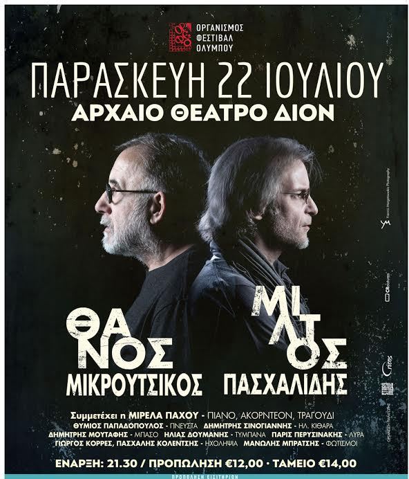 Ο Θάνος Μικρούτσικος και ο Μίλτος Πασχαλίδης αποφάσισαν να περιοδεύσουν μαζί μόνο για το φετινό Καλοκαίρι και ο κόσμος τους επιβράβευσε με την εντυπωσιακή προσέλευσή του στις συναυλίες του. Και εκείνοι, Θάνος και Μίλτος τους δικαιώνουν με το πάθος, το δυναμισμό και τη συγκίνηση που προσφέρουν.