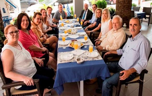Ο κύκλος των επαφών ολοκληρώθηκε στην Παραλία Κατερίνης όπου υποδέχθηκαν την διπλωματική και αυτοδιοικητική αποστολή τα διοικητικά μέλη της Ένωσης Ξενοδόχων Πιερίας, η πρόεδρος Ευαγγελία Λάμπρου-Ξυπτερά, ο αντιπρόεδρος Γεώργιος Ζώβας και ο ταμίας Νικόλαος Λαλούμης.