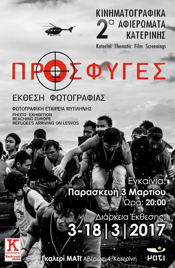 Μια έκθεση την οποία εγκαινιάζει ο Δήμαρχος Κατερίνης Σάββας Χιονίδης, Παρασκευή 3 Μαρτίου, ώρα 20:00, στη Γκαλερί Μάτι, ενώ ο Στρατής Τσουλέλλης (Πρόεδρος της ΦΕΜ) θα μιλήσει για το θέμα της έκθεσης «ΠΡΟΣΦΥΓΕΣ». Την ημέρα των εγκαινίων θα προβληθεί επίσης οπτικοακουστικό υλικό με τίτλο “The Passage to the Dream”, με φωτογραφίες των μελών της ΦΕΜ σε σκηνοθεσία του Στρατή Τσουλέλλη και θα ακολουθήσει συζήτηση με το κοινό.