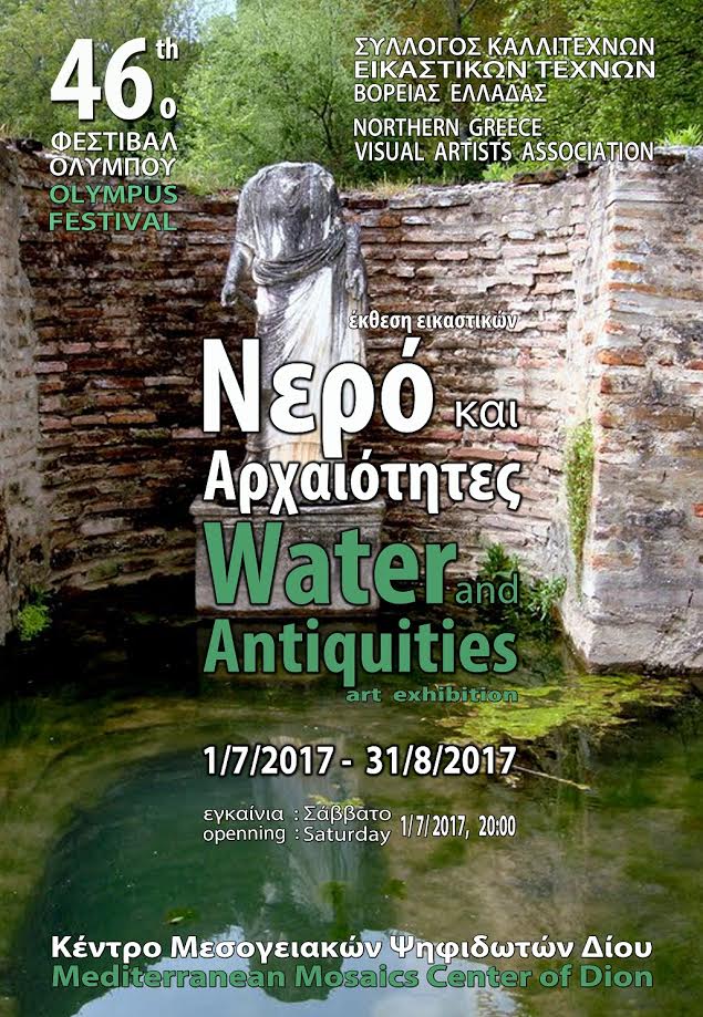 Σ αυτόν λοιπόν τον ιερό τόπο, στο Κέντρο Μεσογειακών Ψηφιδωτών η έκθεση του Συλλόγου Καλλιτεχνών Εικαστικών Τεχνών Βόρειας Ελλάδας με θέμα "Νερό και Αρχαιότητες" που θα διαρκέσει το δίμηνο Ιούλιος-Αύγουστος 2017.