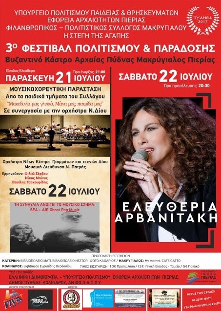 ΔΙΗΜΕΡΟ ΦΕΣΤΙΒΑΛ ΠΟΛΙΤΙΣΜΟΥ 21& 22 ΙΟΥΛΙΟΥ 2017  ΣΤΟ ΒΥΖΑΝΤΙΝΟ  ΚΑΣΤΡΟ ΤΗΣ ΑΡΧΑΙΑΣ ΠΥΔΝΑΣ ΠΙΕΡΙΑΣ