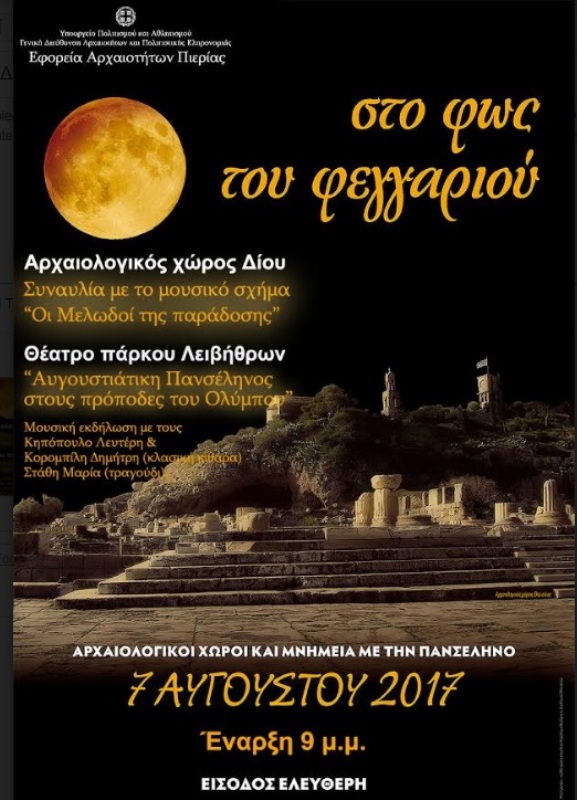 «Αυγουστιάτικη Πανσέληνος στους πρόποδες του Ολύμπου» θ’ ακουστούν μελωδίες αγαπημένων συνθετών από τους Κηπόπουλο Λευτέρη & Κορομπίλη Δημήτρη (κλασική κιθάρα) και Στάθη Μαρία (τραγούδι).