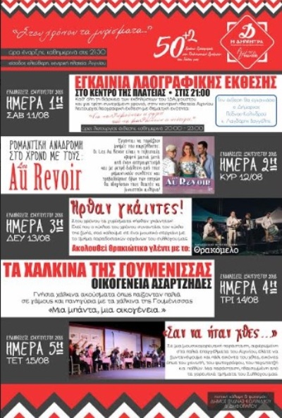 Ο Μορφωτικός Λαογραφικός Σύλλογος Αιγινίου - Η ΔΗΜΗΤΡΑ - σας προσκαλεί στις Λαογραφικές Εκδηλώσεις του 15 Αύγουστου 2018 στην Κεντρική Πλατεία Αιγινίου.