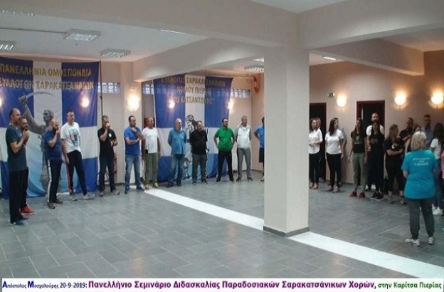 Με αίσθηση ευθύνης, σωστή οργάνωση και αγάπη για την παράδοση και την τέχνη του χορού, άρα και με απόλυτη επιτυχία, ολοκληρώθηκε το διήμερο σεμινάριο διδασκαλίας παραδοσιακών Σαρακατσάνικων χορών της Πανελλήνιας Ομοσπονδίας Συλλόγων Σαρακατσαναίων (Π.Ο.Σ.Σ.), το οποίο πραγματοποιήθηκε την Παρασκευή 20 και το Σάββατο 21 Σεπτεμβρίου 2019 και διοργάνωσε ο Σύλλογος Σαρακατσαναίων Νομού Πιερίας «Ο Κατσαντώνης». Αυτό άλλωστε φάνηκε και από την αθρόα προσέλευση κόσμου από όμορες κοινότητες και όχι μόνο, με την πλειοψηφία των συλλόγων Σαρακατσαναίων, καθώς και λοιπών Πολιτιστικών Σωματείων, να δηλώνουν παρών.