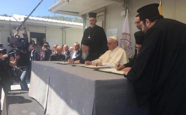 Έκκληση προς τη διεθνή κοινότητα να ανταποκριθεί με θάρρος στη αντιμετώπιση της τεράστιας ανθρωπιστικής κρίσης, «της τραγωδίας της αναγκαστικής μετανάστευσης και της μετατόπισης αλλά και των βαθυτέρων αιτίων της κατάστασης αυτής», μέσω διπλωματικών, πολιτικών και φιλανθρωπικών πρωτοβουλιών, και μέσα από συλλογικές προσπάθειες, τόσο στη Μέση Ανατολή όσο και στην Ευρώπη απευθύνουν με κοινή τους δήλωση μέσα από το κέντρο καταγραφής και διαμονής μεταναστών και προσφύγων το γνωστό και σαν hotspot της Μόριας, ο Πάπας Φραγκίσκος, ο Οικουμενικός Πατριάρχης Βαρθολομαίος και ο Αρχιεπίσκοπος Αθηνών Ιερώνυμος.