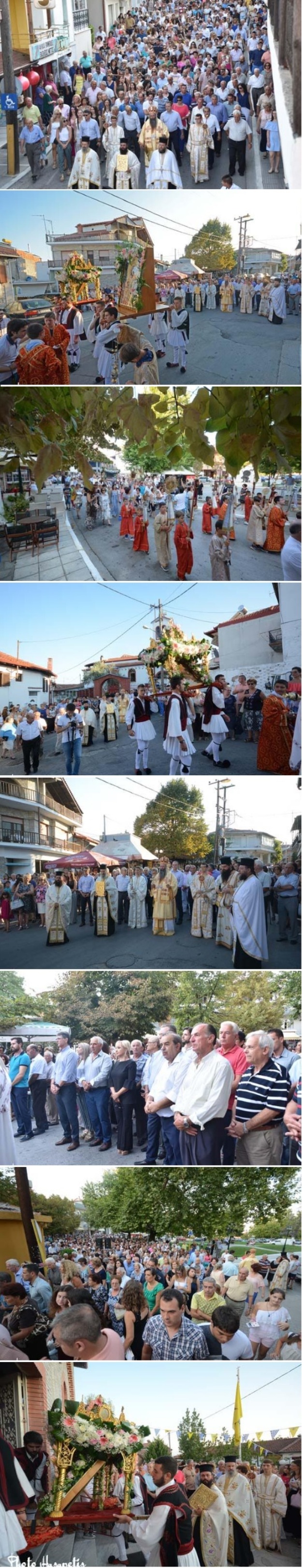 Αρχικά η χορωδία της ενορίας, έψαλε μπροστά στον Επιτάφιο της Παναγίας τα εγκώμια και στη συνέχεια ξεκίνησε πομπή, με τη συνοδεία της φιλαρμονικής και προεξάρχοντος του Μητροπολίτη Κίτρους κ. Γεωργίου με τη συμμετοχή πολλών πιστών, εκπροσώπων της βουλής και της τοπικής αυτοδιοίκησης και ακολουθώντας την κεντρική οδό κατευθύνθηκε στην κεντρική πλατεία Κολινδρού.